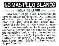 Pues yo imagino que era un producto líquido tipo Grecian 2000, que se aplicaba en el cabello seco, no se enjuagaba y las canas desaparecían volviendo al color original del cabello, me parece como poco curioso que en esa época ya existían productos para las canas, sea cual sea la eficacia y los principios activos, la gente ya se preocupaba por los cabellos blancos.